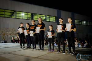 Απονομή επαίνων στο διαγωνιστικό τμήμα GRADE 2b του Μοντέρνου Χορού για την 2η θέση στην κατηγορία Jazz Group Juveniles στον διαγωνισμό TDF και στο μεγάλο τμήμα HIP HOP (ομάδα Looney Tunes) για την 1η θέση στην κατηγορία STREET DANCE/HIP-HOP Youths Small Groups στο CROWD IDF.