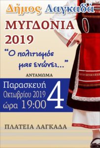 Την Παρασκευή 4 Οκτωβρίου, στην κεντρική πλατεία του Λαγκαδά, ο Δήμος Λαγκαδά διοργανώνει το αντάμωμα «Ο Πολιτισμός ενώνει». Στην εκδήλωση θα συμμετέχει ο Πολιτιστικός Συλλόγος Λαγυνών. Η εκδήλωση ξεκινάει στις 19.00.